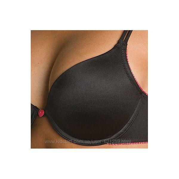 Бюстгальтер TRIUMPH Германия , размер 80-D.Черный лиф с контрастной отделкой, серия miss SWeetheart- Сладкое сердце, ярко-розовая пуговица в форме сердца между чашками.