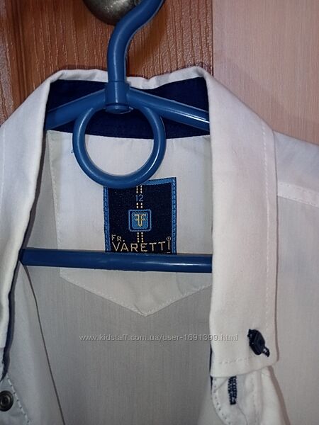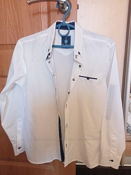 Продам класичну котонову, білу сорочку - теніску на зріст 134-140см., стан 5+, комірець - 38см., рукав - 53см, довжина - 59см., плечі -41см., Турція.Додаткові фото та відео можу надати.