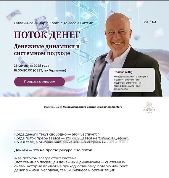 Этот семинар посвящён денежным динамикам — системным силам, которые влияют на приход, остановку, потерю или рост денег в жизни человека, семьи, бизнеса и организаций.