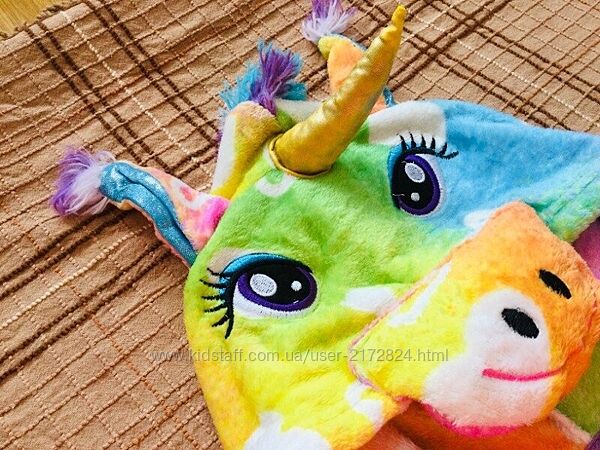 10-11 рок. Disney Халат Одноріг з мордочкою на капюшоні, райдужний з останньої колекції. флісовий, махровий, пухнастий, теплий, банний, на море або в басейн. стан ідеальний. зав´язується на талії пояском. є Кишені. довжина 91; рукав від вороту 61Другие объявления продавца