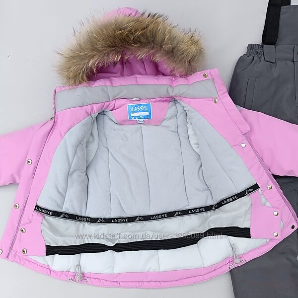 Дуже теплі, утеплювач поліестер 100%, до -30 °C.Куртка та напівкомбінезон не продуваються, не промокає, "дихає" (мембрана).Підкладка щільний фліс і нейлон.Рукави та штани підкочуються.Є сніго- та вітрозахисний пояс на куртці, еластичні манжети, захист від снігу на штанах.Хутро натуральне, пишне, відстібається.Капюшон відстібається, є утяжки.Є світловідбивачі.