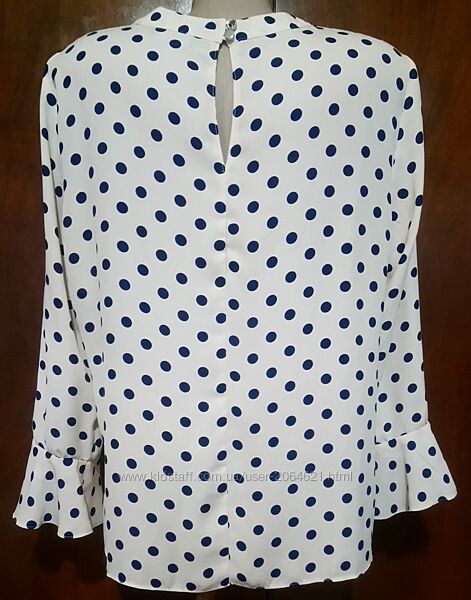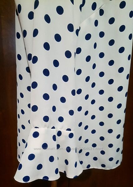 Блузка р.52 чорний горох на фоні коліру нюд довгі рукавиЛегка тонка тканина. Застібається ззаду на два гудзики. Прямий крій. Довгі рукав.