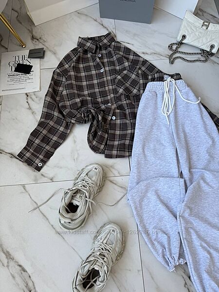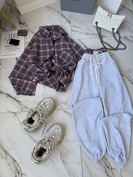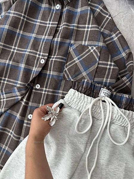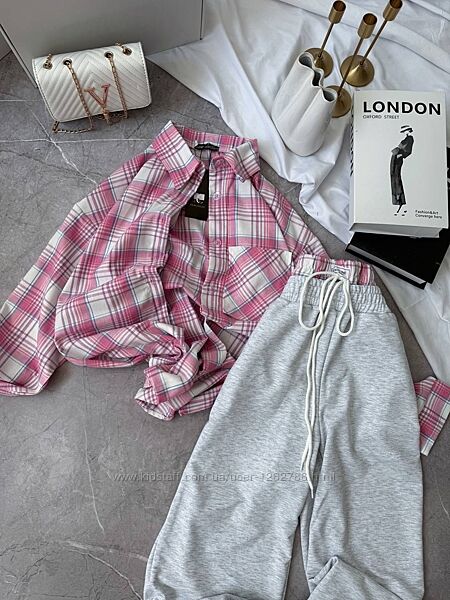 Стильна та зручна сорочка в клітинку у дуєті з штанами, незамінна річ жіночого гардеробу, костюм ідеально підійде для прогулянок та повсякденних образів,сорочка та штани відмінної якості та пошиття.