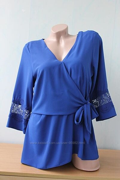 Блуза з мереживом кольору кобальт dorothy perkins. Бренд маломірить на розмір, але тут завдяки запАху можна груди трохи більше.НОГ — 48, довжина рукава — 42, довжина — 66, поб — 57