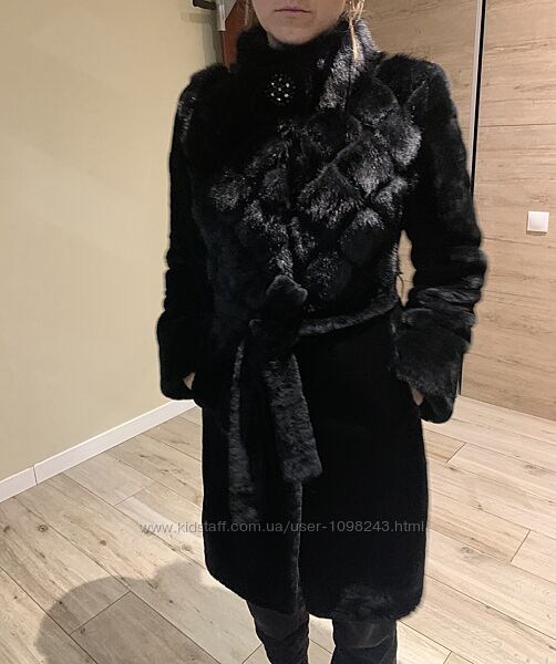 Зовсім НОВА натуральна шуба з мутону з норкою, ДУЖЕ ТЕПЛАНорка до пояса і на комірі, Комір на магніті, все інше на металевих застібках