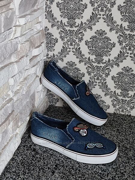✔️✔️Нові підліткові джинсові сліпони з оригінальним декором!Розмір 38, але йдуть на 37.
