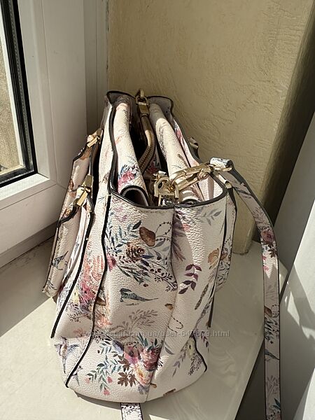Подробное описание: Женская сумка Parfois светлая цветы твердая квадратная трапеция