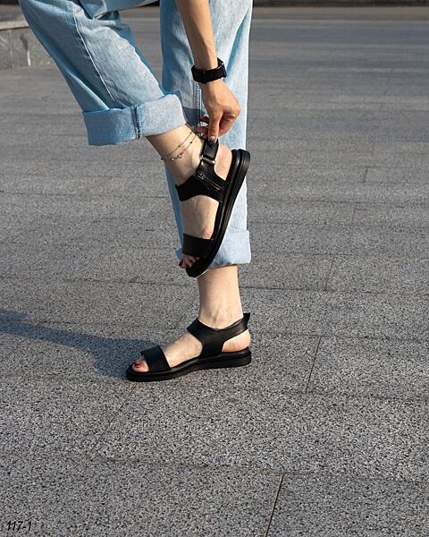 Подробное описание: Жіночі чорні босоніжки з натуральної шкіри з блискавкою збоку