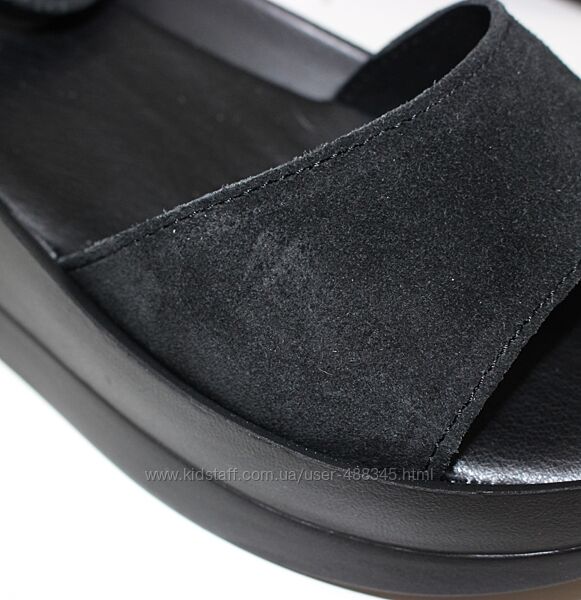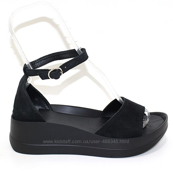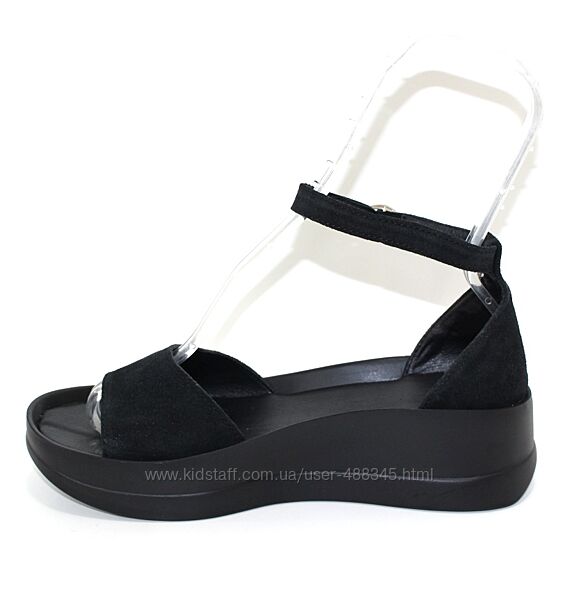 Подробное описание: Жіночі чорні босоніжки з натуральної замші на танкетці з закритим задником
