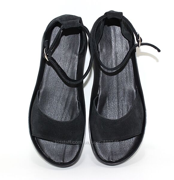 Жіночі чорні босоніжки з натуральної замші на танкетці з закритим задникомКраїна-виробник Україна