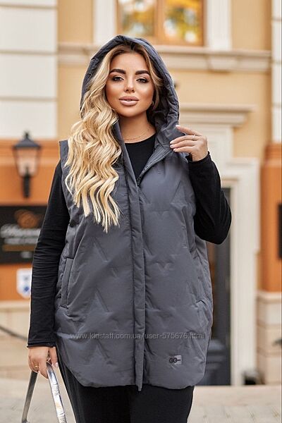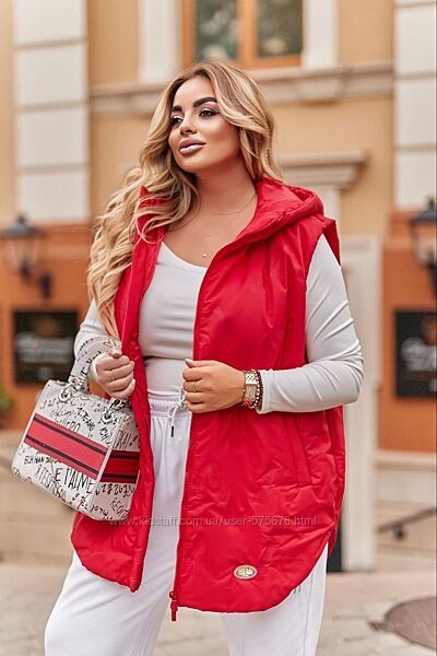 Подробное описание: р.48 до 62р. Жилетка жіноча плащівка емі матова, пайка стьобана, синтепон