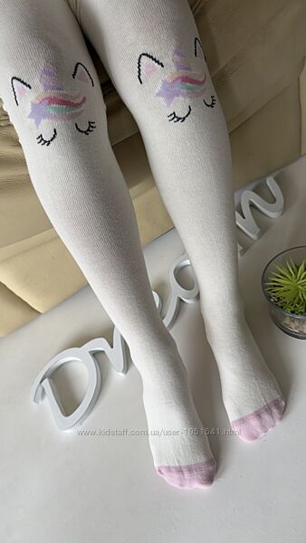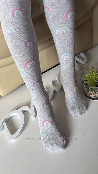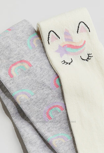Колготки H&M з м’якої бавовняної суміші тонкої в’язки з еластичною талією,двошовні, з пїяткою .Колір - сірий і бежевий единоріжка