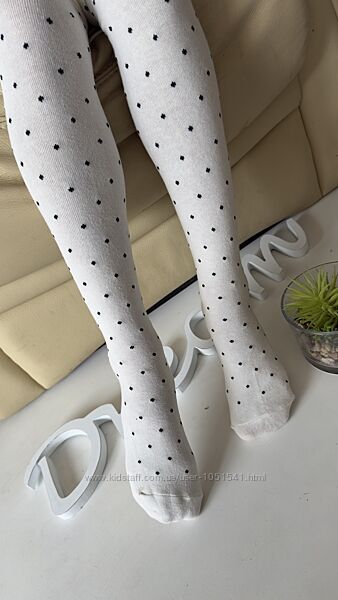Колготки H&M з м’якої бавовняної суміші тонкої в’язки з еластичною талією,двошовні, з пїяткою .Колір - бежевий -крапка і чорний -полоска