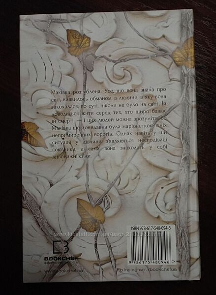 Книга абсолютно нова, не читанаМаківка розгублена. Все, що вона знала про світ, виявилось обманом, а людини, в яку вона закохалася, по суті, ніколи не було на світі. Їй доводиться жити серед тих, хто щиро бажає їй смерті, — і цих людей можна зрозуміти, бо Маківка ще недавно була маріонеткою їхніх непримиренних ворогів. Однак навіть у цій ситуації в дівчини з’являються несподівані союзники, а сама вона знаходить у собі дивовижні сили.