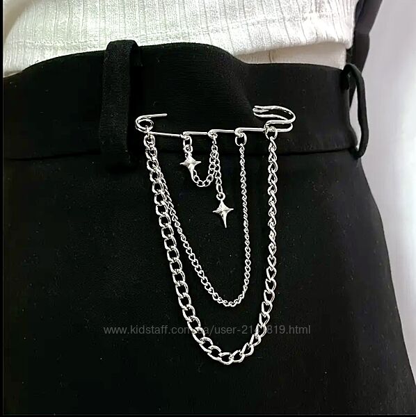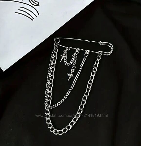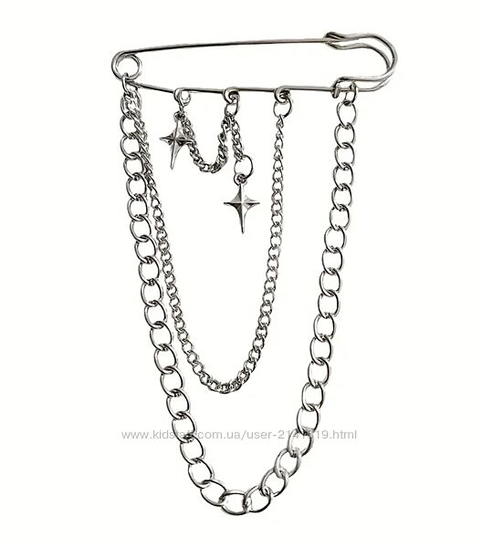 Модная и супер популярная брошь булавка с цепочкой.Цвет: серебристый