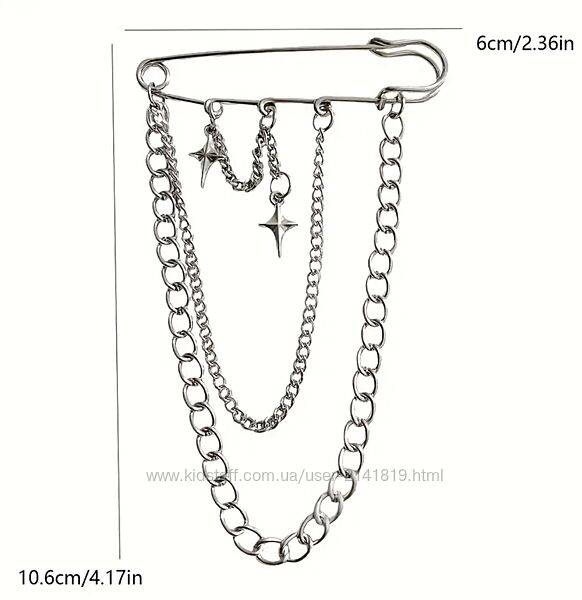 Подробное описание: Стильная брошь булавка с цепочками, серебристая брошь булавка на одежду