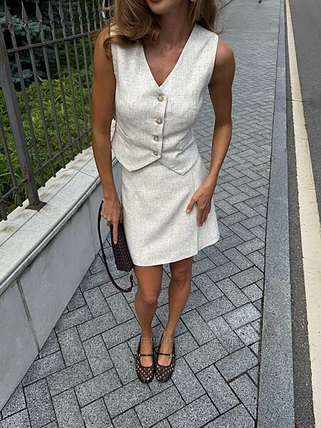 Інші костюми зі спідницею нашого магазину Ви можете переглянути за посиланням: https://www.kidstaff.com.ua/user-anno-1997582/sect...Костюм "Ностальжі льон" жилет на підкладці, на ґудзиках, сзаду регулюється; спідниця на підкладі, сзаду на застібці, збоку розріз