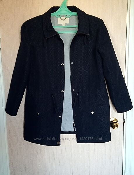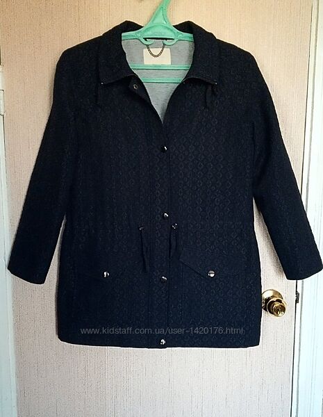 Продам куртку 46-48р., у хорошому стані, дефектів немає. Заміри: довжина по спинці 79см, довжина рукава 61см, ПОГр 54см, ширина по низу 59см. Тканина - 48% бавовна, 45% поліестер, 7% віскоза.