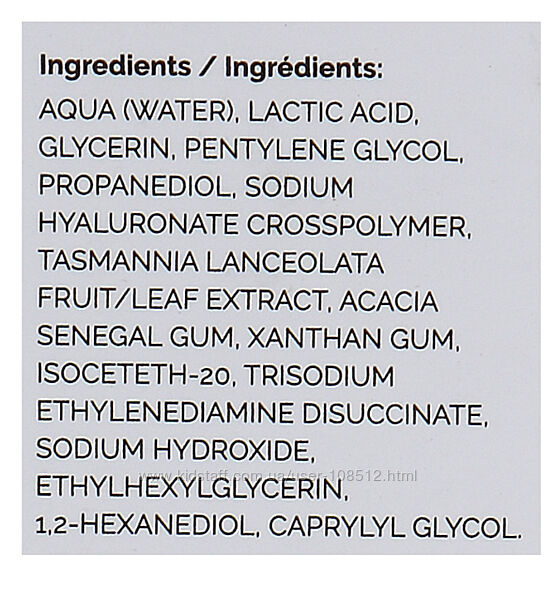 Інгредієнти: акація, гліцерин, гіалуронова кислота, молочна кислота