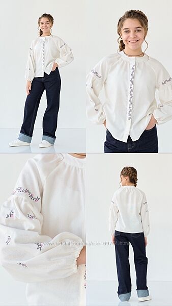Сучасна льняна вишиванка для дівчинки, р.116-164Тканина-льон, відмінної якості, мʼяка, приємна до тоді