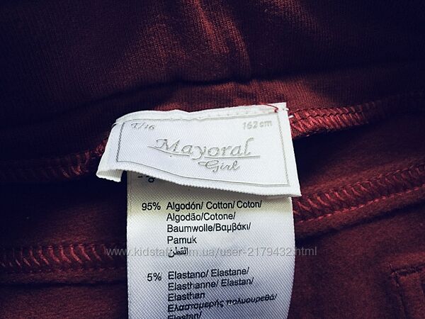 14-16 рок. Mayoral Штани нові, натуральні, утеплені з начосом всередині. Школа. Якість супер, оригінал. Тканина полотна з еластаном, гарно тягнуться. В поясі є утяжка. вся брендова фурнітура. Колір Марсала бургунді. По бірці розмір 16/162 см, але маломірять.довжина 90; крок 70; пот 37; Пос 42; посадка 23-25