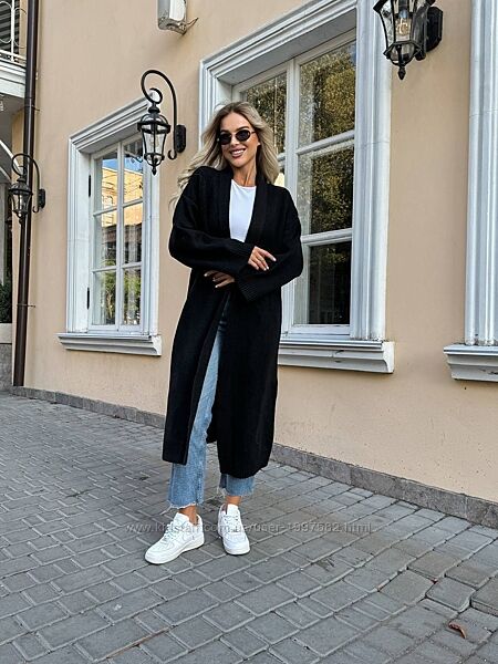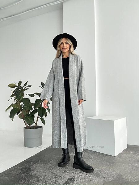 Подробное описание: Подовжений кардиган, виконаний з мякої пухнастої пряжі. Кардіган ідеально