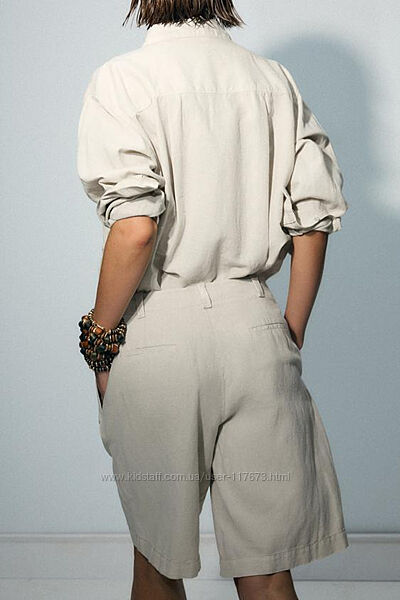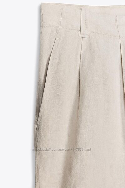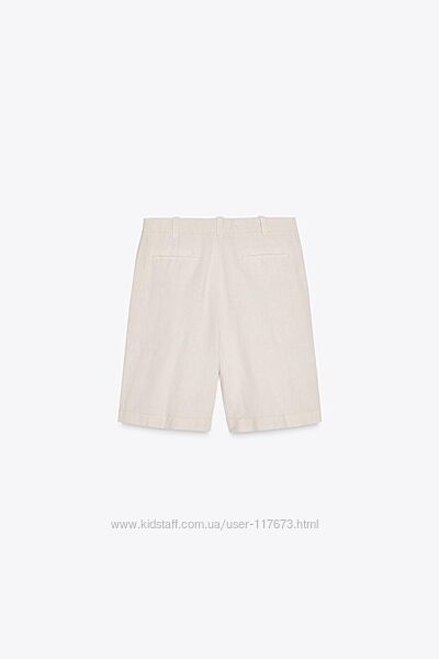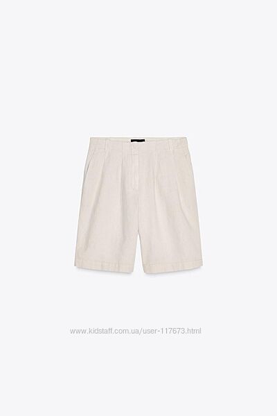 ZARA ШОРТЫ ИЗ СМЕСОВОГО ЛЬНА С ЗАЩИПАМИ — ZW COLLECTION, ЭКРЮ