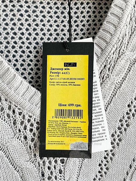 Подробное описание: Новий легкий сірий светрик сіточка