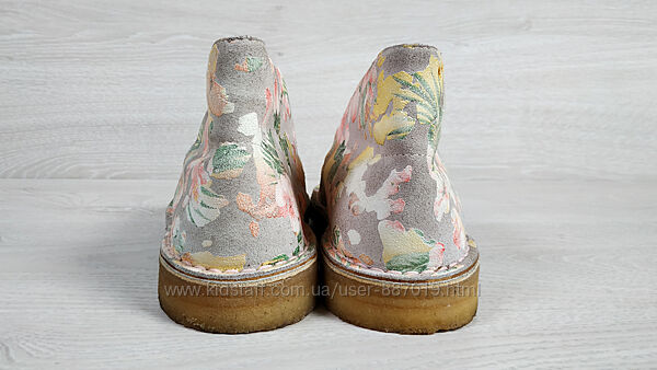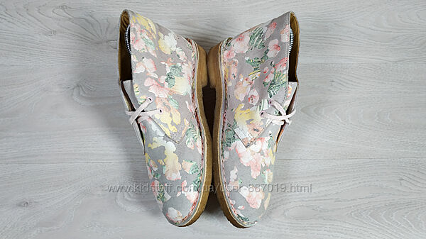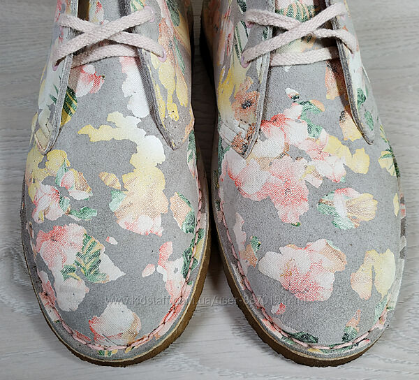 Гарні жіночі демісезонні черевики з квітами Clarks, оригінал.Натуральна замша.