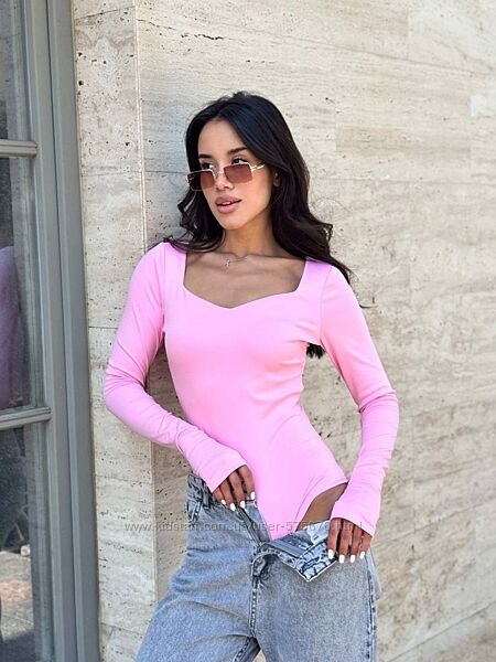Стильний боді,фіксується при допомозі двух кнопок знизу, є вирізи для пальчиків .Чудово облягає фігуру.
