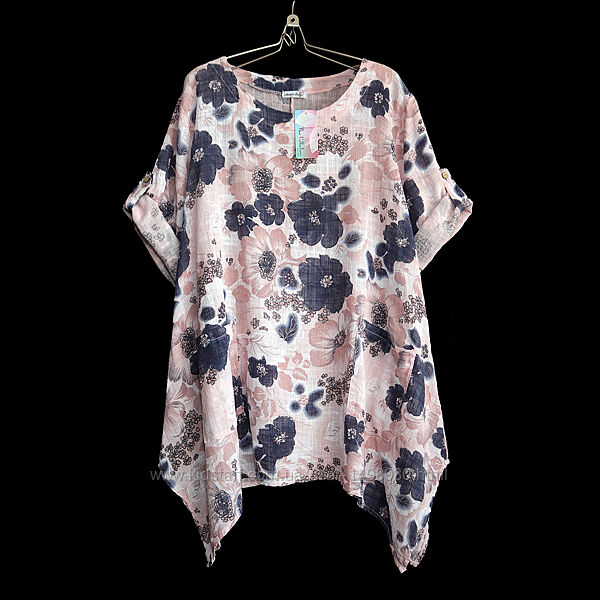 Довга квіткова італійська блузка з бавовни р.18-20