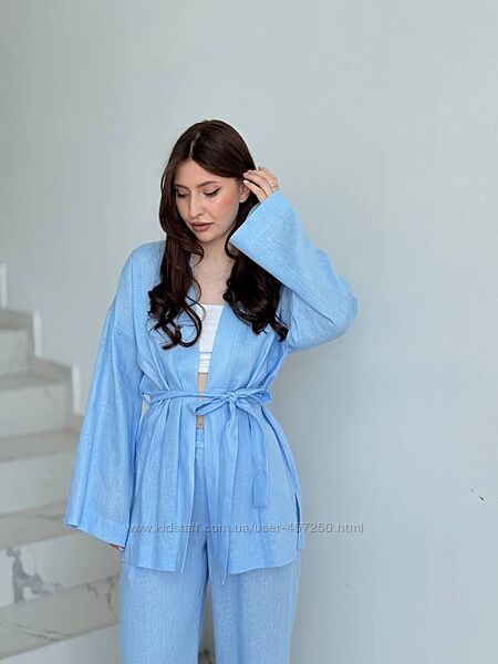 Красивенний костюм із 100% льону у розмірі Л.Кімоно+брюки на резинці.Бренд Clothe, Італія.