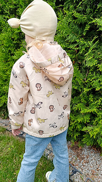 Курточка-вітровка демі фірми H&M колір ,бежевий - принт собачки на тонкій підкладціРІСТ