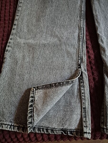 Сірі джинси кльош із розширеними штанинами з розрізами внизу. Б/у, проте ношені тільки пару раз, в чудовому стані, жодних недоліків нема.Розмір: 32Довжина від пояса: 110 см