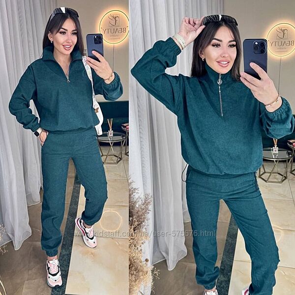 Кольори пляшка, чорний, сірий , беж, джинс, малина, графіт, фреза, блакитний штани з високою посадкою, манжети штанів на резинці, кофта затягується по низу резинкою можно зробити як і ширше так і звузити , манжети на кофті резинка