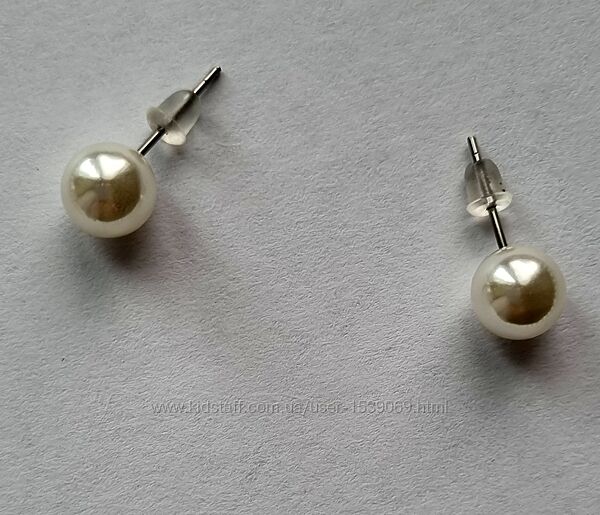Елегантний набір з сережок і намиста із штучних перлин, довжина намиста - 40 см, діаметр кульки - 8 мм.Без нюансів, повернення не передбачено. Оформлено в кісет із органзи.