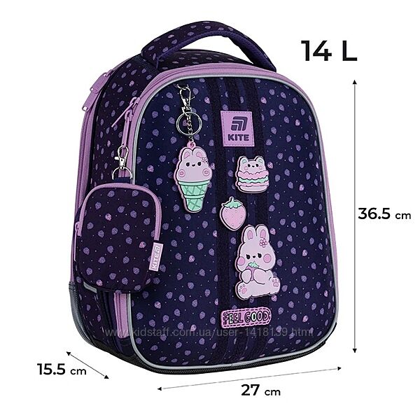 New. Рюкзак шкільний Kite Feel Good з зайчиком для дівчинки в 1-4клас+ в подарунок гаманець прикріплений до рюкзаку, гаманець в тому ж дизайні, що і рюкзак.