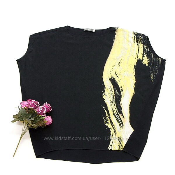 Элегантная, комфортная, стильная, современная, выполнена из натуральной дышащей ткани, очень приятная к телу, не просвечивает. Крой очень свободный, книзу заужена, спинка длиннее переда. Оригинальный принт смотрится очень круто. Вещь универсальная, подойдет как для повседневной носки, так и для торжественных случаев, легко сочетается с любым низом.