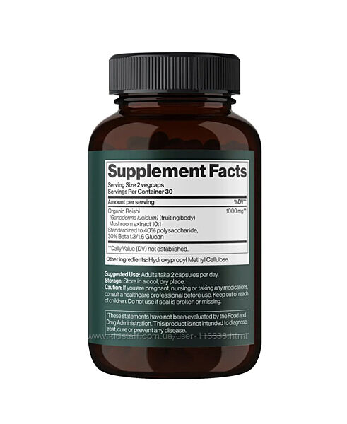 Органический экстракт гриба рейши (Ganoderma lucidum) (плодовое тело) 10:1, стандартизированный до 40% полисахарида, 30% бета-1,3/1,6-глюкана = 1000 мг