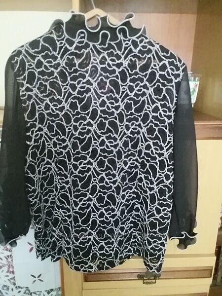 Продам блузку женскую ажурный трикотаж чуть стрейч, рукава шифоновые с рюшим, Размер 50-52, Плечи 44, обхват груди 110, Длина рукава 44, длина блузки 62,новаяДругие объявления продавца