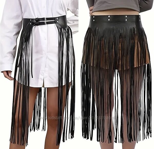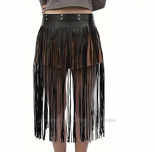 Стильная юбка бахрома экокожа, баска пояс женский, портупея бахрома, ремень