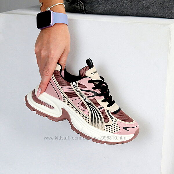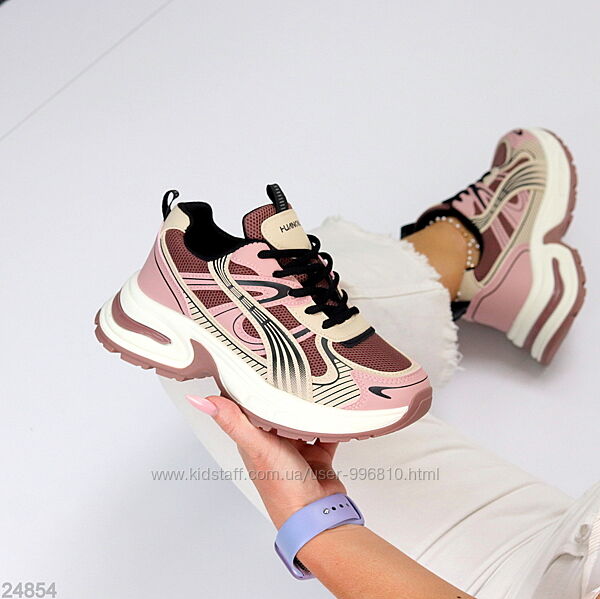 Подробное описание: Ефектні міксові рожеві бежеві кросівки у стилі спорт-шик