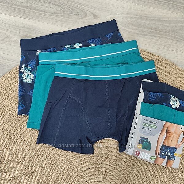 Подробное описание: Боксери чоловічі Livergy 3 шт бавовна, бірюза/темно-сині