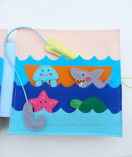 Розвиваюча книга з фетру, - цікава, яскрава, корисна іграшка, оригінальний подарунок на будь-яке свято.У книзі є елементи на розвиток моторики: різні види застібок, шнурівка, пізнавальні сторінки, сторінки з магнітною рибалкою (магніти вшиті всередину тканини)