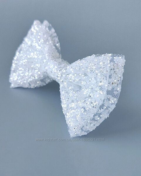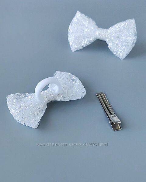 Подробное описание: Святкові, блискучі, білі бантики для волосся, для дівчинки.