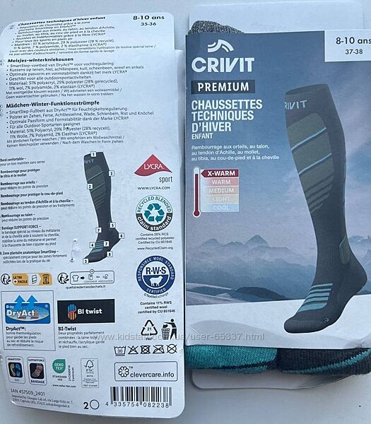 Подробное описание: Лижні носки шкарпетки термо гольфи crivit, німеччина