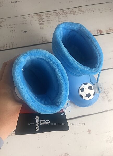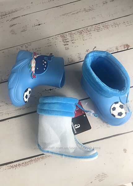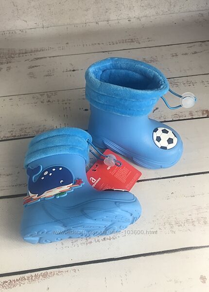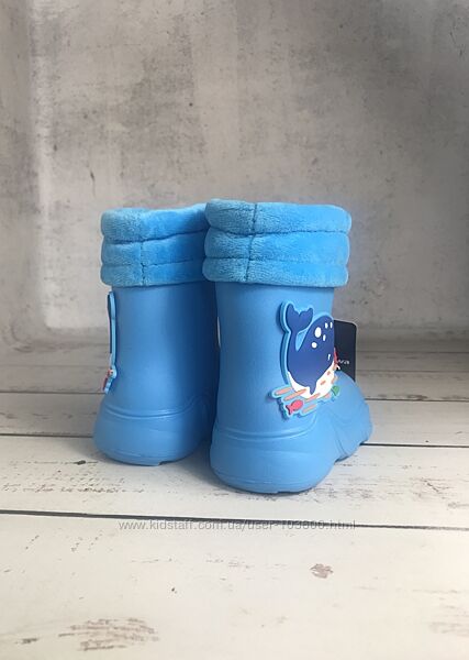 Створені з водонепроникного та невагомого матеріалу EVA (етіленвінілацетат), який візуально нагадує спінену гуму, відомого своєю еластичністю та м’якістю, а головне який добре підлаштовується під форму стопиВсередині приємний на дотик флісовий знімний валяночок з гумовою утяжкою, щоб ноги дитини перебували завжди в сухості і не набрали воду через верх