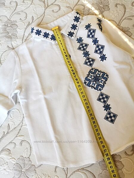 Дитяча вишиванка для хлопчика. Розмір 104, дивіться виміри на фото. Це був подарунок, котрий шивсясь на замовлення татові та сину, але так і не одягнули її ні разу, переросли.Крій, Тканина та вишивка дуже якісні.