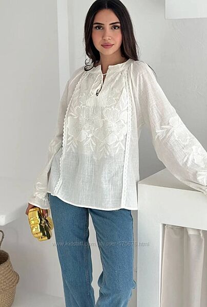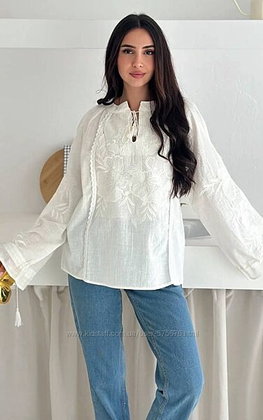 Блуза вишиванка , рукав на шнурівці , яка стягується80% бавовна , 20% поліестер