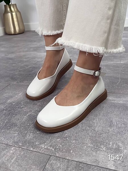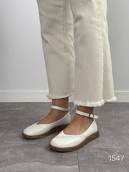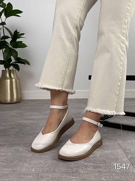 Туфлі Poline Колір : білий Матеріал : Еко шкіра Розміри : 36-41 (в розмір) Висота підошви : 2,5см 36 - 23,5 см 37 - 24,0 см 38 - 24.5 см 39 - 25,5 см 40 - 26 см 41 - 26,5 см